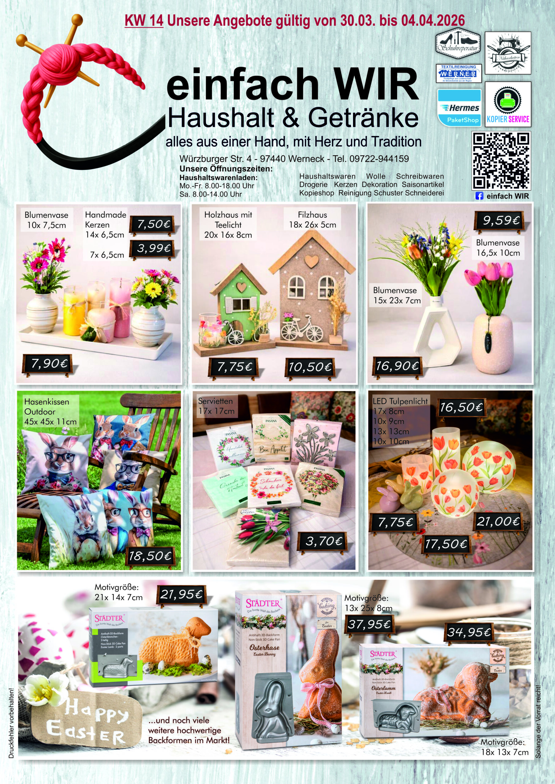 Mehr als Einkauf: Bei einfachWIR erledigt ihr Post, Lotto, Hermes, Reinigung, Schneiderei, Schuster, Copyshop, Propan & Edelgase, Feuerwerk & Pyrotechnik – alles an einem Ort.